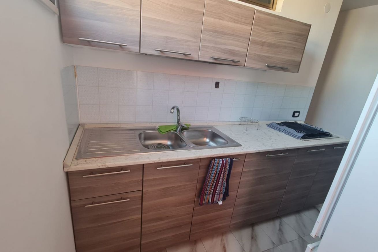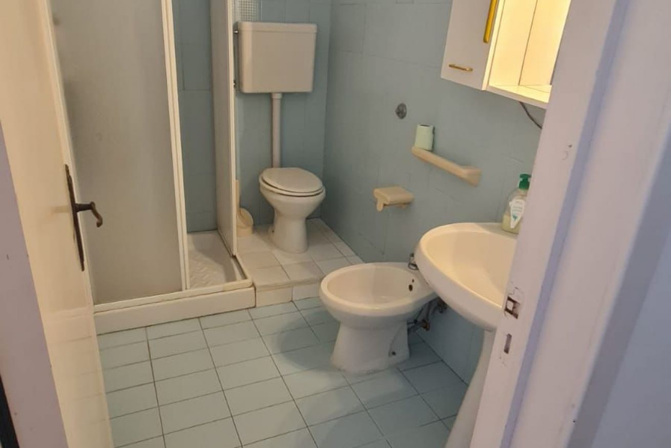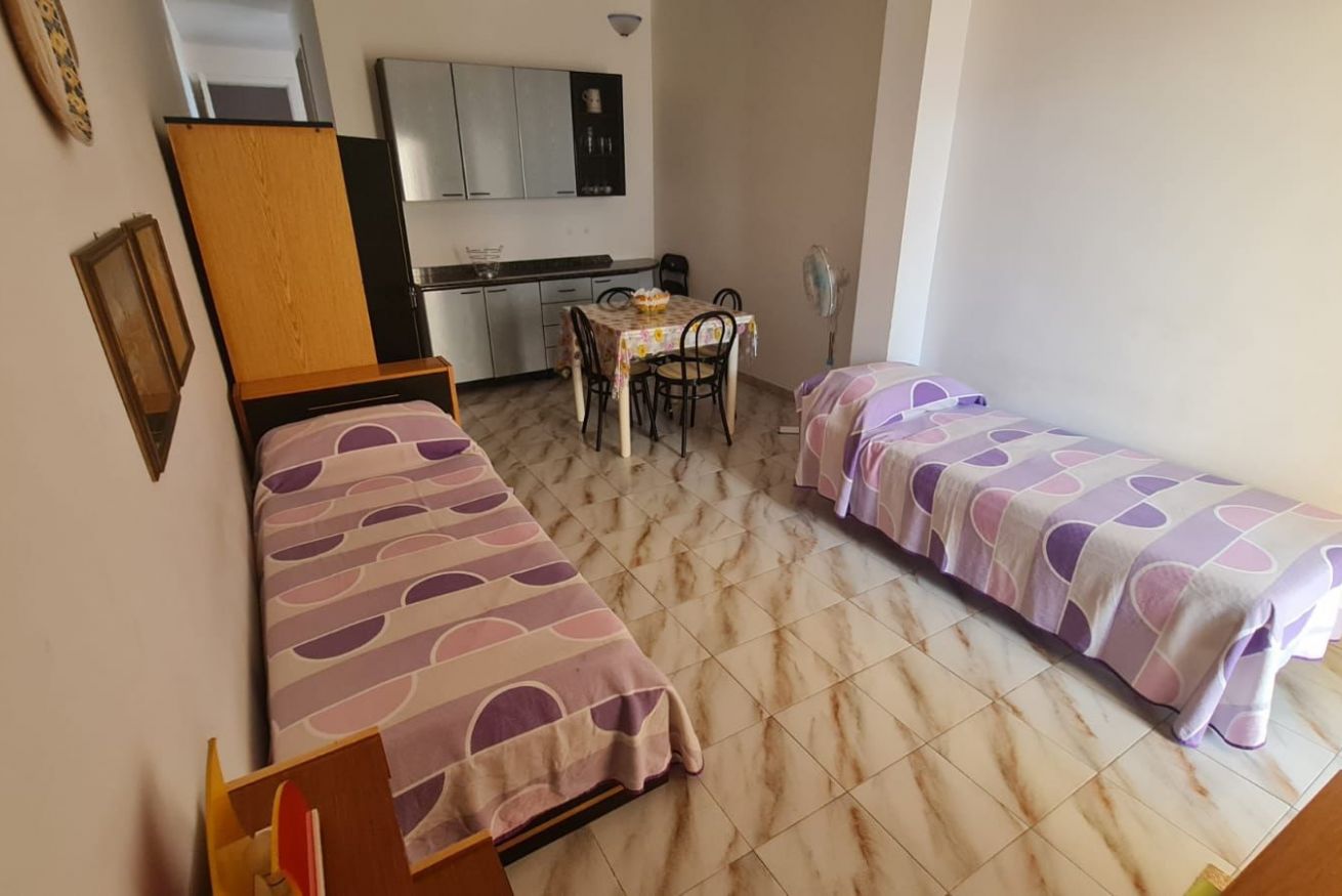 Appartamento al primo piano, a 200 metri dal mare, con aria condizionata. Composto da soggiorno con due letti singoli, cucinino con lavatrice e lavello, bagno completo con doccia, camera da letto matrimoniale.