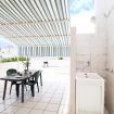 Dalla cucina si accede a un'enorme terrazza solarium di 40 mq attrezzata con tavolo e sedie, barbecue, ulteriore doccia, lavello.